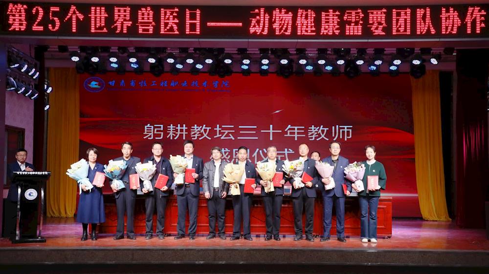 4月24日,兽医科技学院召开第六届世界兽医日系列活动总结大会。在兽医科技学院1200余名师生的共同见证下,一场庄重而温馨的“尊师重教 薪火相传”教师感恩仪式精彩上演。学院党委副书记张海军为在兽医教坛辛勤耕耘了三十年的教师颁发荣誉证书。本次感恩教育活动,不仅是对过往岁月的深情回望与崇高致敬,也激励着兽医科技学院师生不忘初心、赓续荣光、锐意进取,共同开启兽医科技学院发展的崭新篇章。