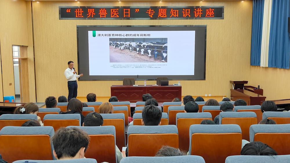 4月23日,兽医科技学院邀请北京卓越富铭进出口有限公司总经理刘涛,为师生们带来了一场题为《中国活畜进口与牧场管理实务》的专题报告。报告从全球活畜贸易格局的演变入手,系统且深入地讲解了进出境检疫、国外品种奶牛和肉牛的生长繁育、疾病防控以及饲养管理等方面的知识。这场干货满满的行业知识讲座,为学生打开了通往行业前沿的视野,让学生了解到更多专业领域的最新动态和发展趋势,对未来的职业发展有了更清晰的认识和规划。
